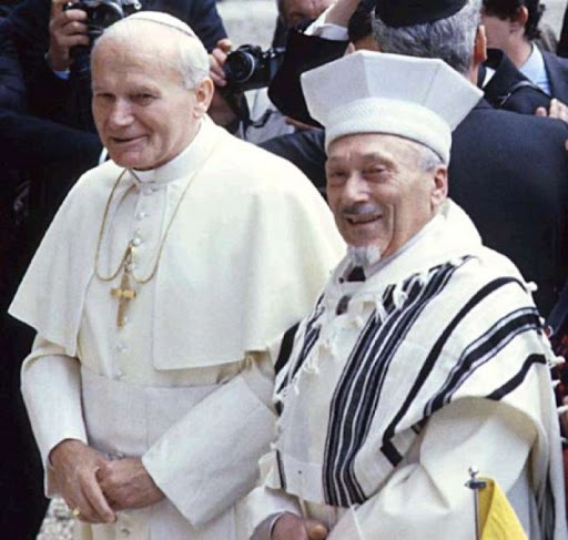 Nous avons dit ailleurs comment l’église et la synagogue se sont séparées après l’ère apostolique. Cet éloignement réciproque a perduré et est loin d’être totalement révolu malgré les grands progrès des dernières décennies. Il convient ici de souligner les pas en avant décisifs réalisés par toutes les églises, illustrés de façon significative par l’entrée historique du pape Jean-Paul II dans la synagogue de Rome le 13 avril 1986. On se souvient aussi des déclarations solennelles de repentance et du désir de réconciliation de la part de toutes les instances chrétiennes officielles.(cf.www.jcrelations.net/fr/declarations.html)
